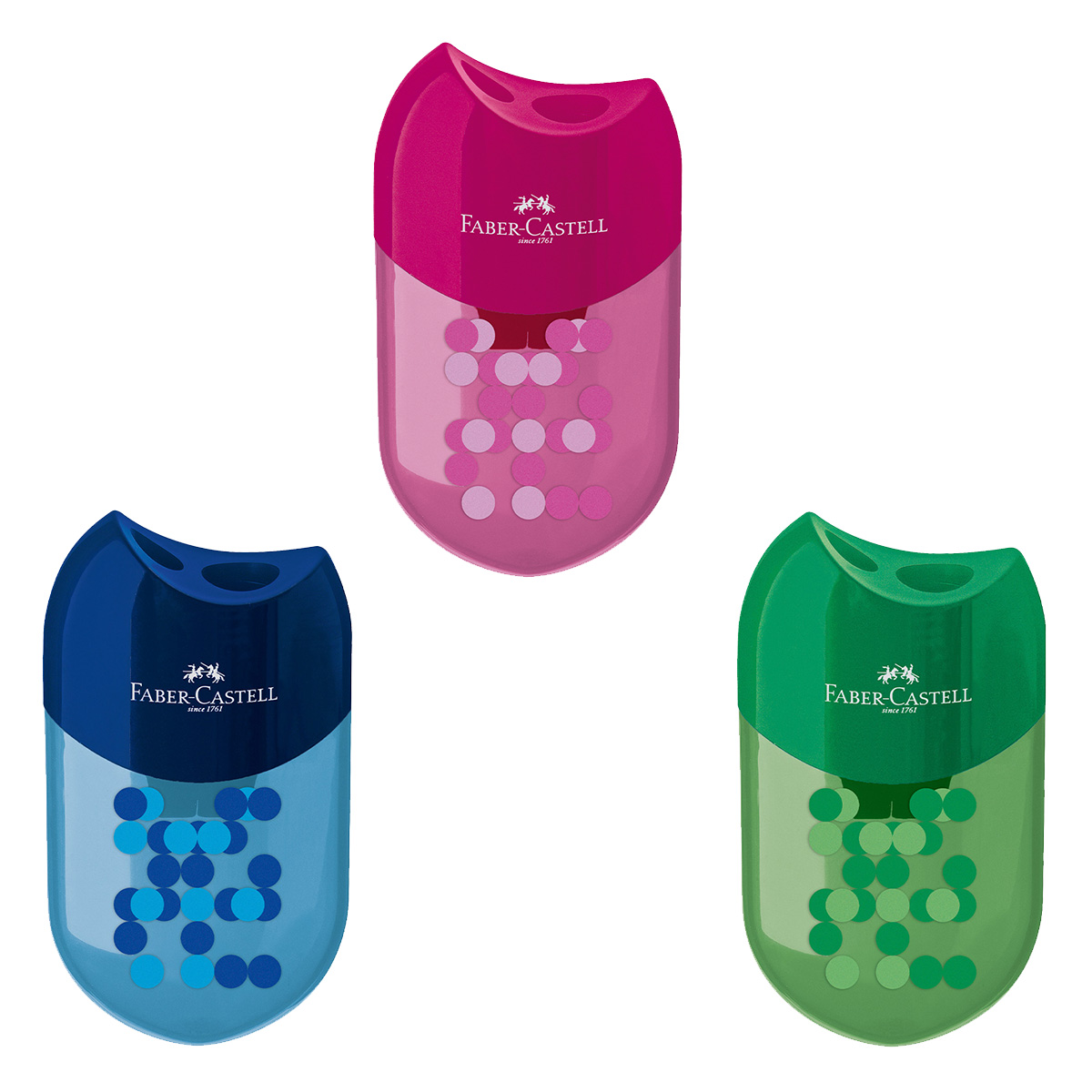 O apontador Two Tone chegou para completar o seu estojo: um conceito que você já conhece, agora em uma nova categoria! Um design exclusivo Faber-Castell, ele possui dois furos sendo ideal para todos os formatos de lápis. Além disso, possui depósito grande para mais praticidade e menos sujeira.