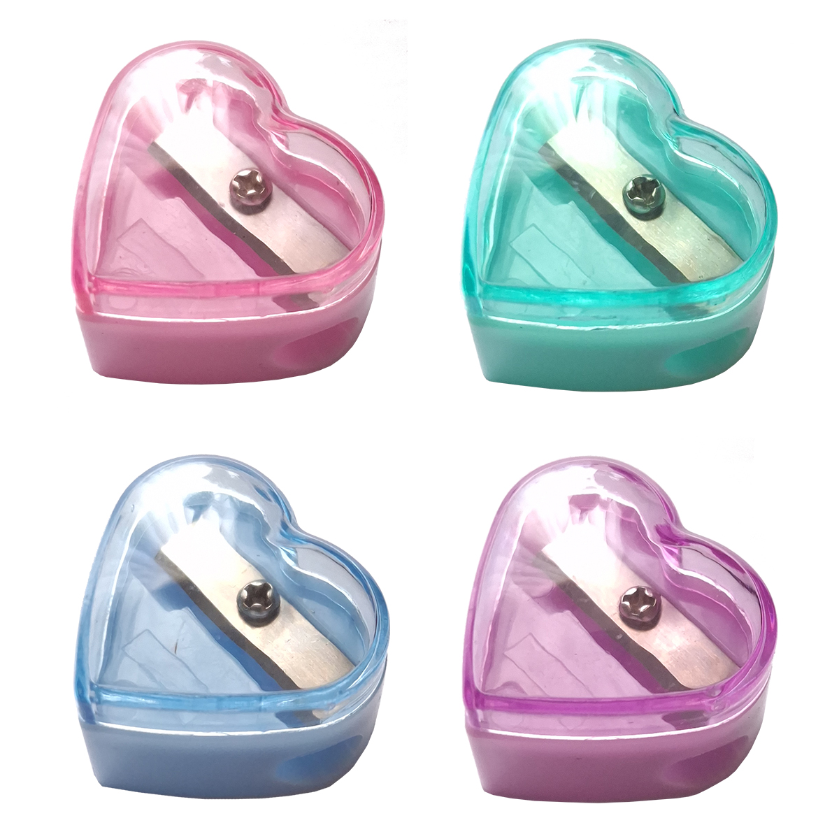 Apontador Escolar formato Coração CIS, possui depósito pequeno.