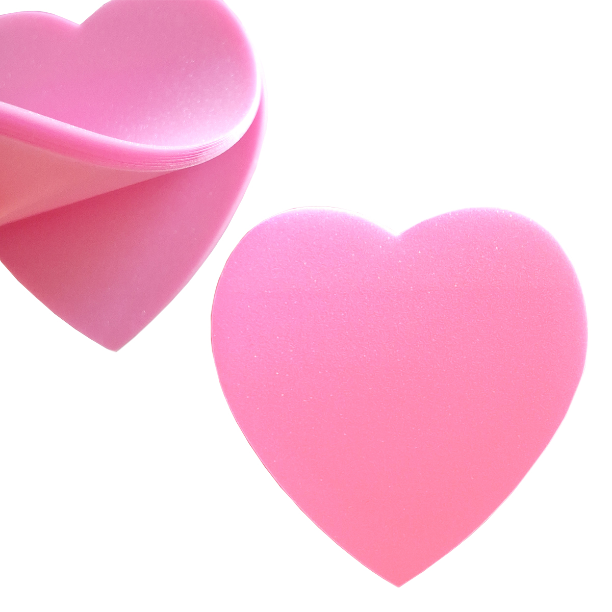 Em formato de coração e tamanho 70x70mm, é produzido em PET, possui brilho discreto e elegante e pode ser utilizado para anotações em grafite (lápis, lapiseira) ou canetas em geral (gel, esferofráficas, marcadores).
