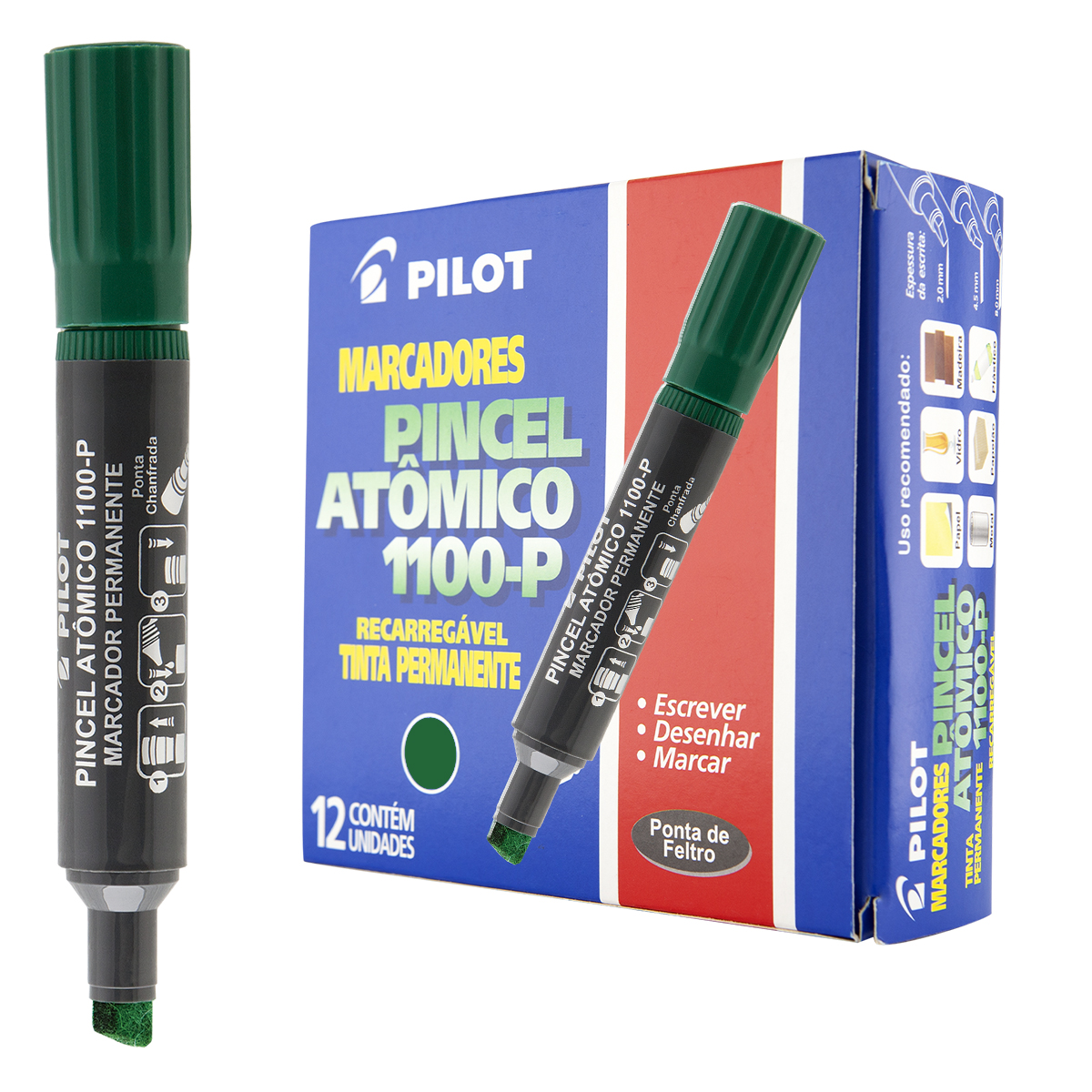 Caixa 12 Pincel Atômico PILOT Marcador Permanente 1100-P Chanfrado VERDE