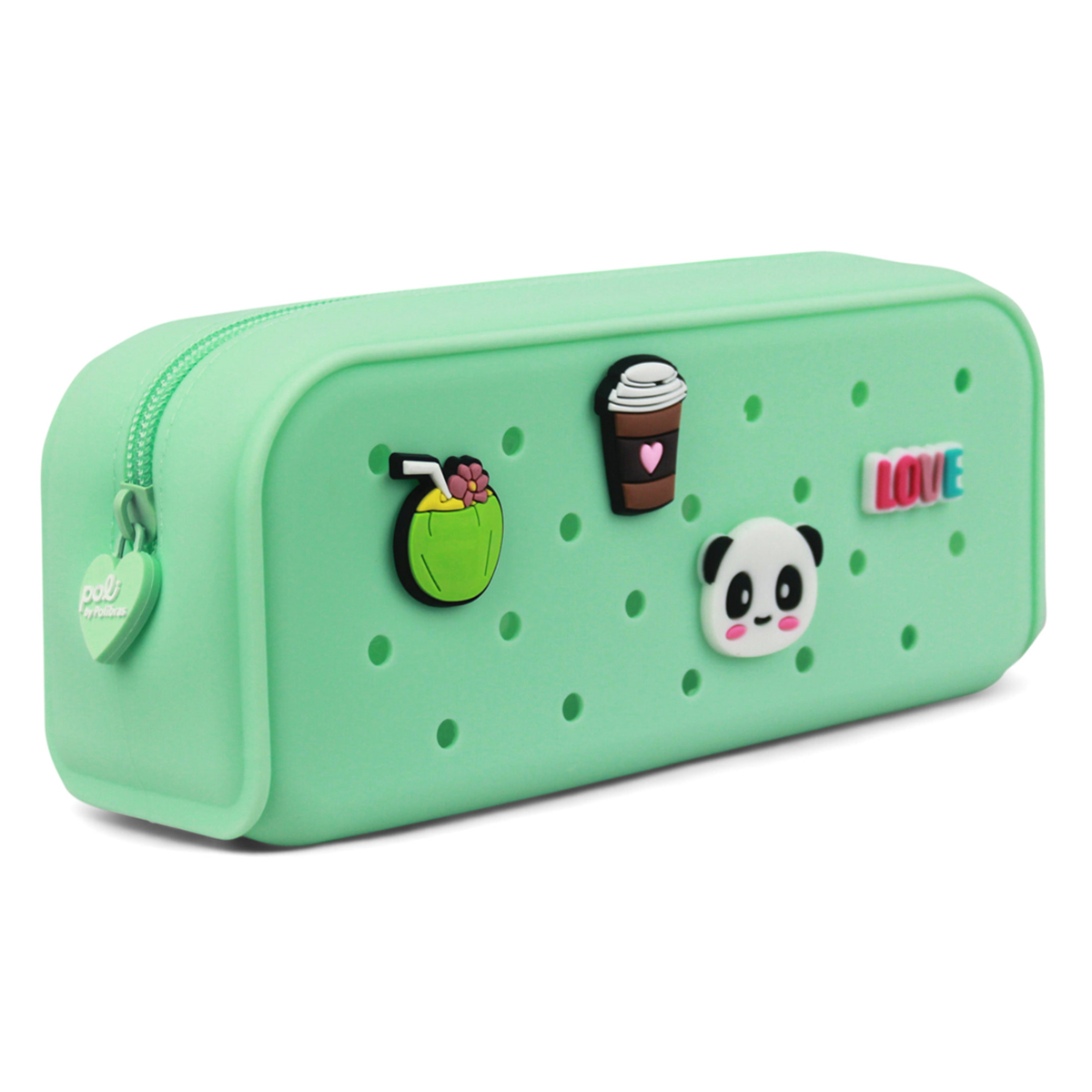 Lindo Estojo Escolar em silicone, com 4 pingentes muito fofos, da POLIBRAS