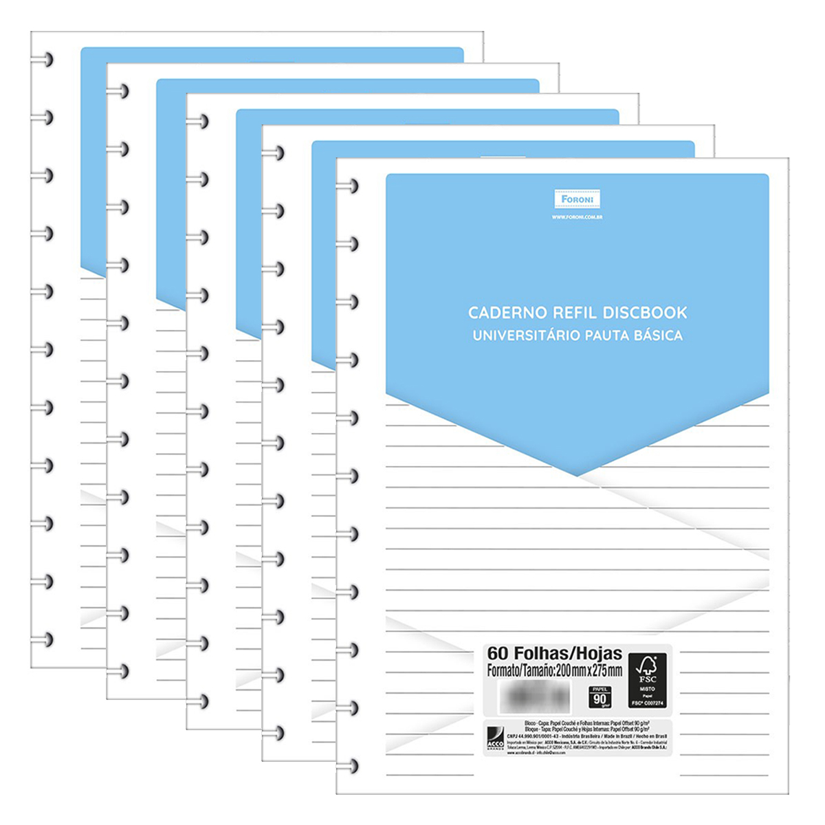 Kit 05 Refis para Discbook (Caderno de Discos), formato Universitário, FORONI