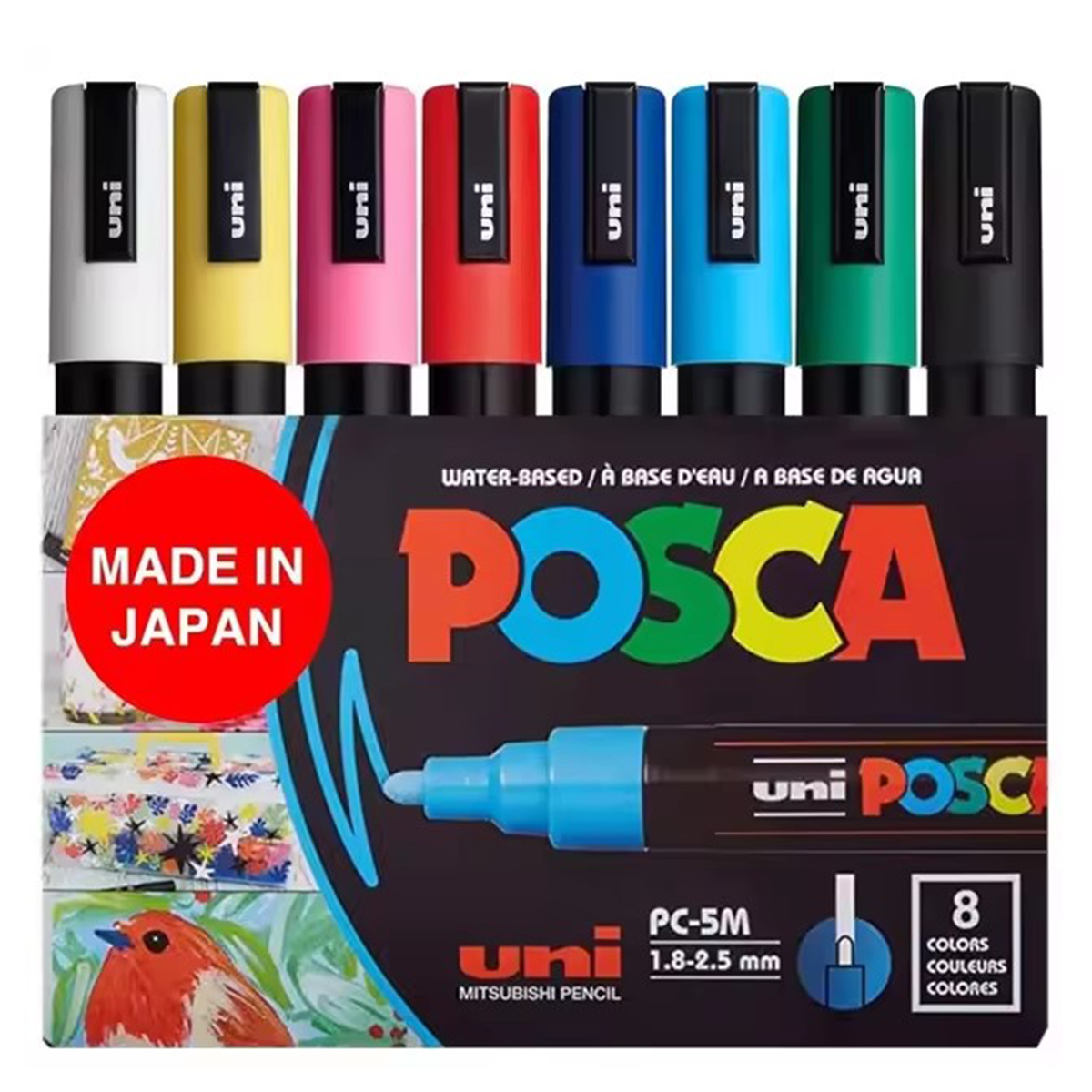 As canetas Poscas são mundialmente conhecidas pela sua versatilidade, efeitos artísticos, pelo seu controle de traço e cores vibrantes e de preenchimento perfeito. A caneta PC-5M possui uma ponta média arredondada que produz traços entre 1.8 e 2.5mm e é recomendada para customizações e pequenos preenchimentos.
