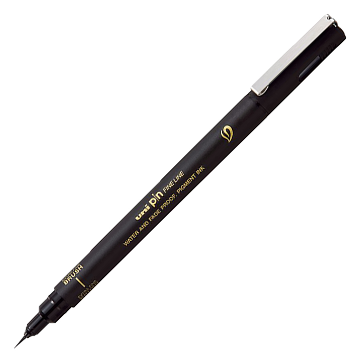 Com ponta pincel de poliéster extra fina e flexível, a Brush Uni Pin é uma ferramenta artística perfeita que todo desenhista e caligrafista precisa ter. Possui tinta fluida e bem pigmentada a base de solventes, e é à prova d'água e borrões.