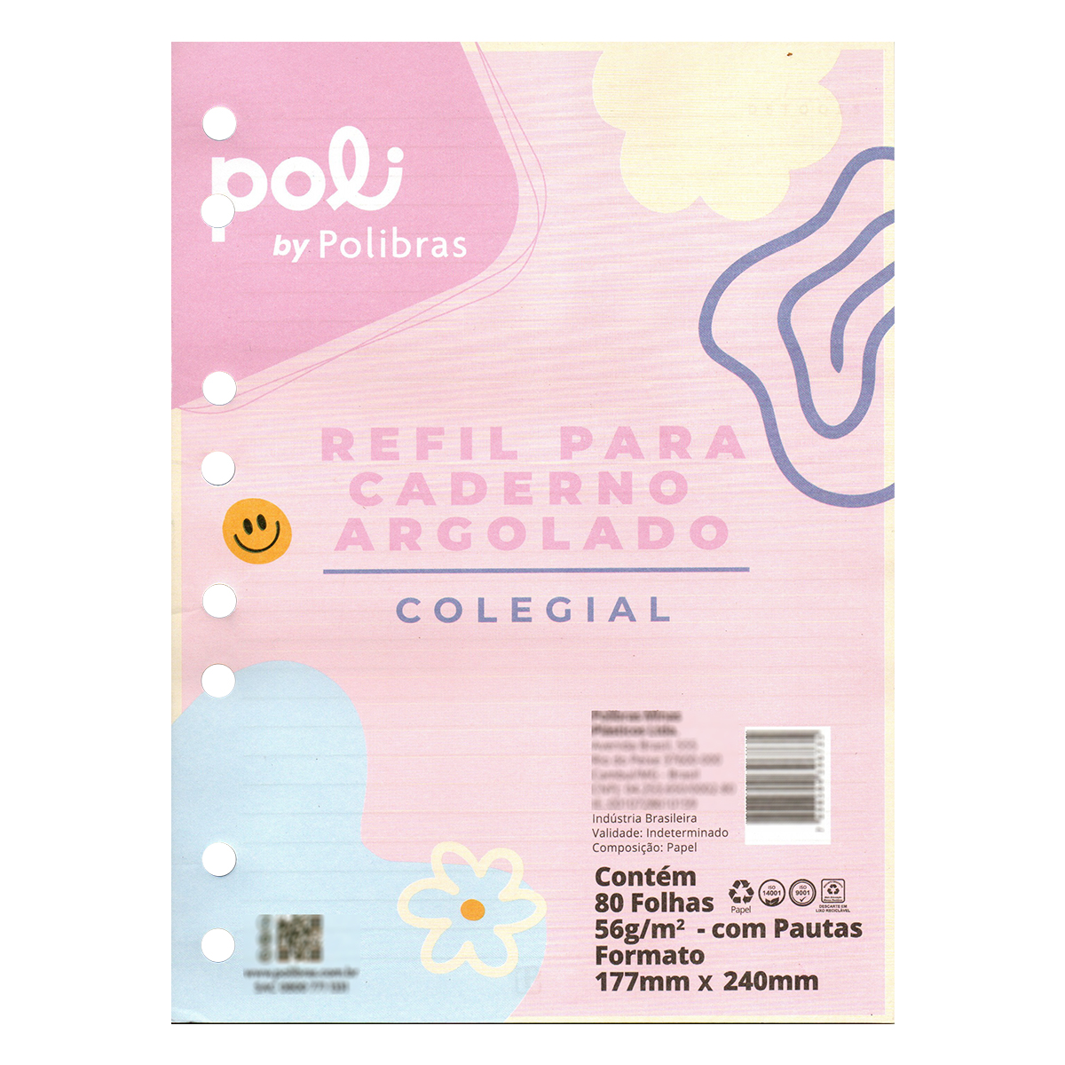 Ideal para quem utiliza os cadernos argolados tamanho colegial (menores), as folhas polibras são perfeitas para sua organização e manter suas anotações sempre impecáveis. Em gramatura básica 56g/m², cada bloco possui 80 folhas caprichosamente impressas para trazer conforto ao seu dia a dia.